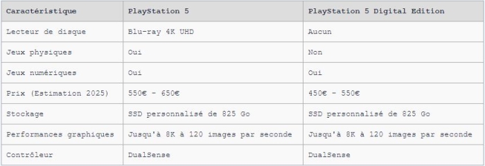 Tableau Comparatif : PS5 vs. PS5 Digital Edition